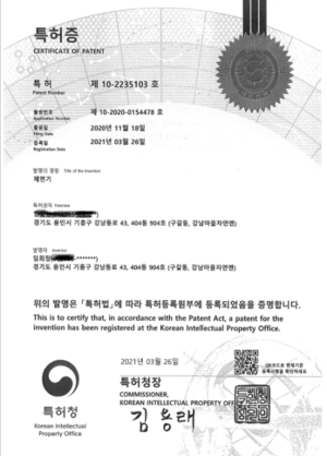 특허증(제면기)