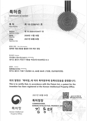 특허증(면의 제조 방법)
