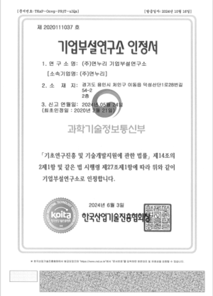 기업부설연구소 인정서